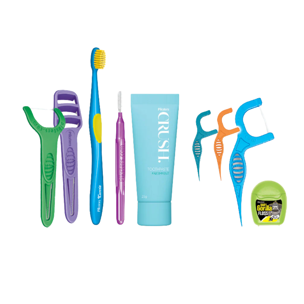 Piksters On The Go Essentials Oral Care Kit includes all your favourite oral care essentials, conveniently packed in a waterproof hard case for durability. It is perfect for your on-the-go adventures and the bright, colourful cases helps avoid getting them misplaced or lost.